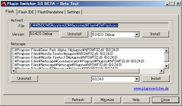最新版のFlash Playerでも簡単に入れ替え可能。またFlash Player以外のPluginも入れ替え可能なんで何かと仕事に役立ちそうです。